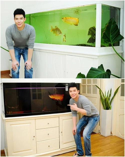 Bể cá rồng với chú cá Goldie và Leemo tiền triệu quý giá về cả vật chất lẫn tinh thần của nam ca sĩ. Đây là sở thích được truyền cảm hứng từ cha anh - một trong những người chơi cá rồng đầu tiên tại Hà Nội.