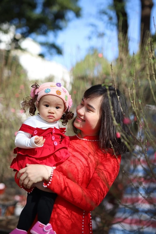 Bé gái cùng mẹ du xuân ở vườn hoa lớn nhất Đắk Lắk.