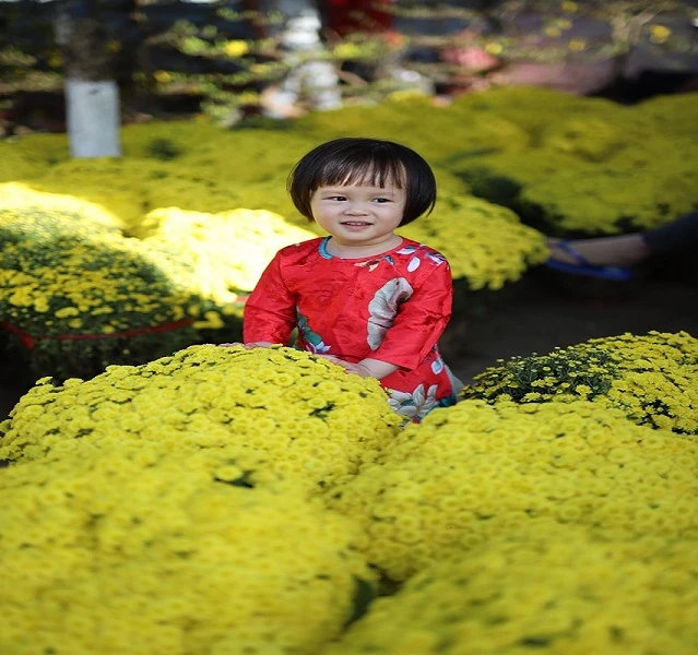 Bé gái hồn nhiên trong chợ hoa.