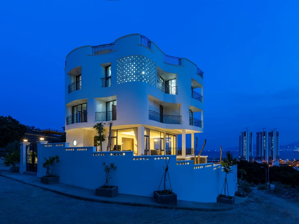 Dưới ánh sáng của đèn điện, Villa Núi Sạn lung linh, huyền ảo, là nơi gia chủ có thể tận hưởng những phút giây bình yên.