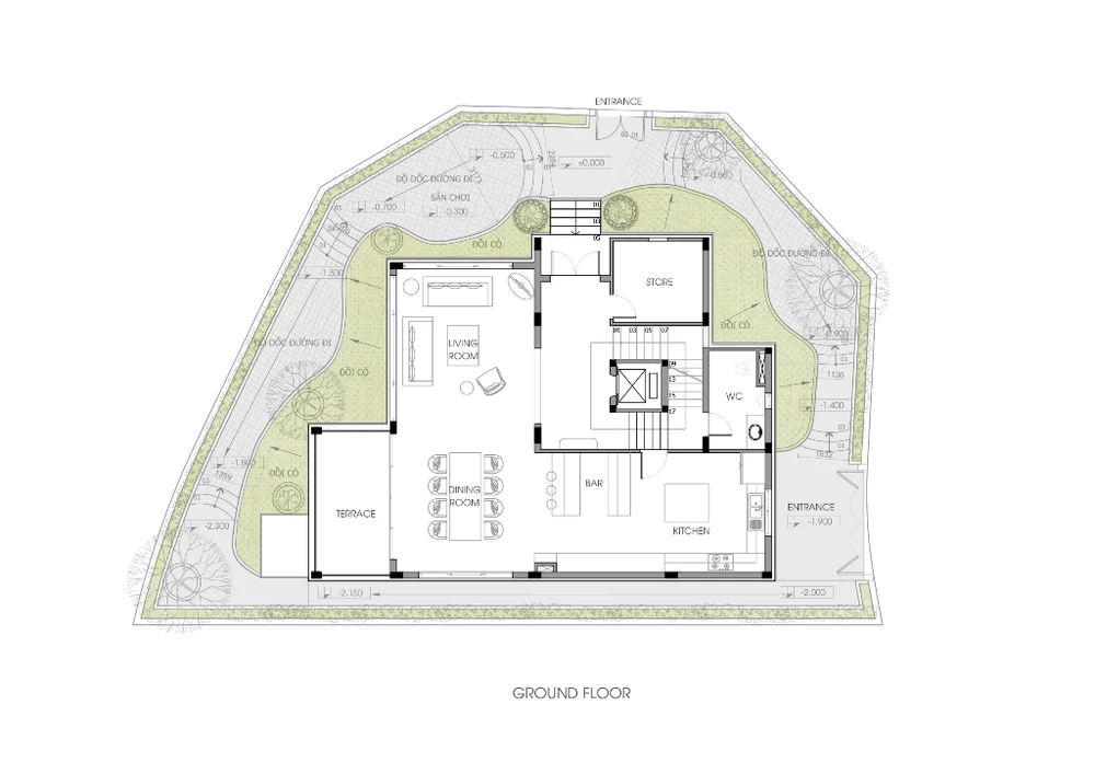Tầng một là không gian của phòng khách, bếp, khu vực ăn uống...