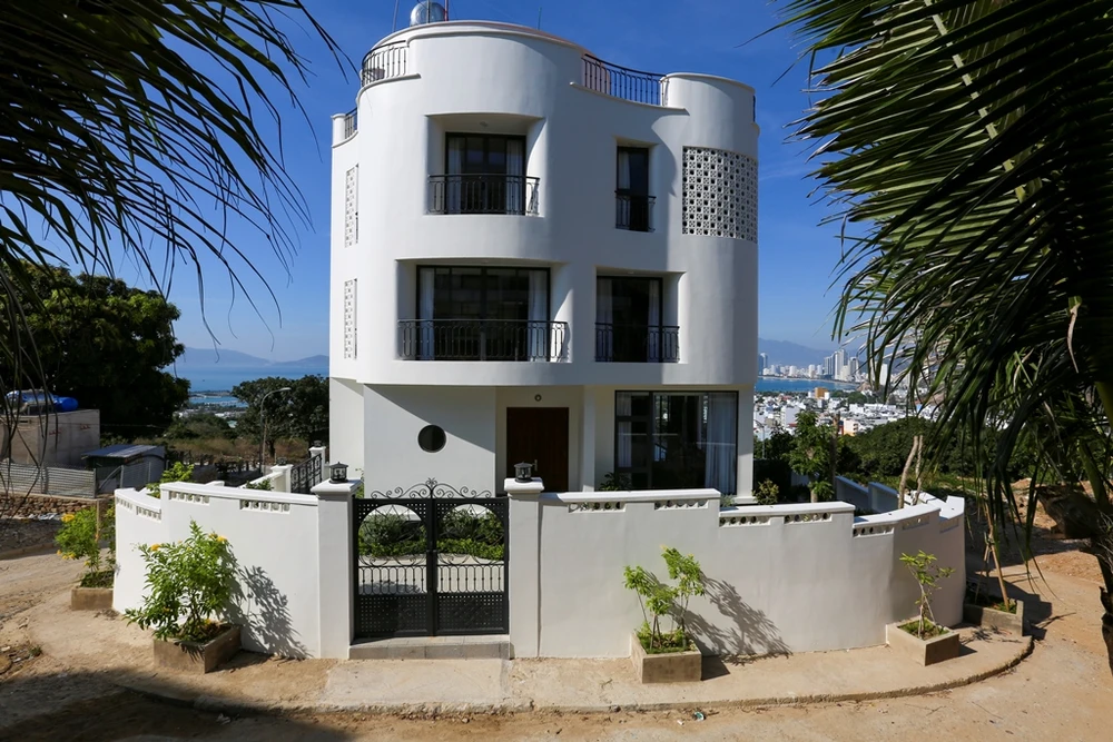 Dựa vào thế đất và địa hình đặc biệt, KTS đã đưa vào công trình hình ảnh đường cong của những bãi biển và đồi núi Nha Trang để tạo ra một ngôi nhà vừa mền mại nhưng rất vững chải. Ngôi nhà vừa mở rộng tầm nhìn thoáng đãng nhưng cũng rất kín đáo.