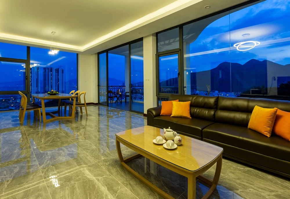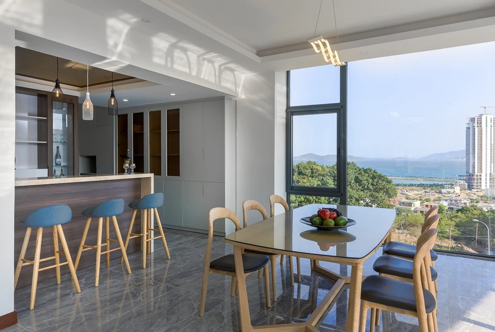 Mọi ngóc ngách trong nhà đều có view hướng ra bãi biển và đồi núi xung quanh.