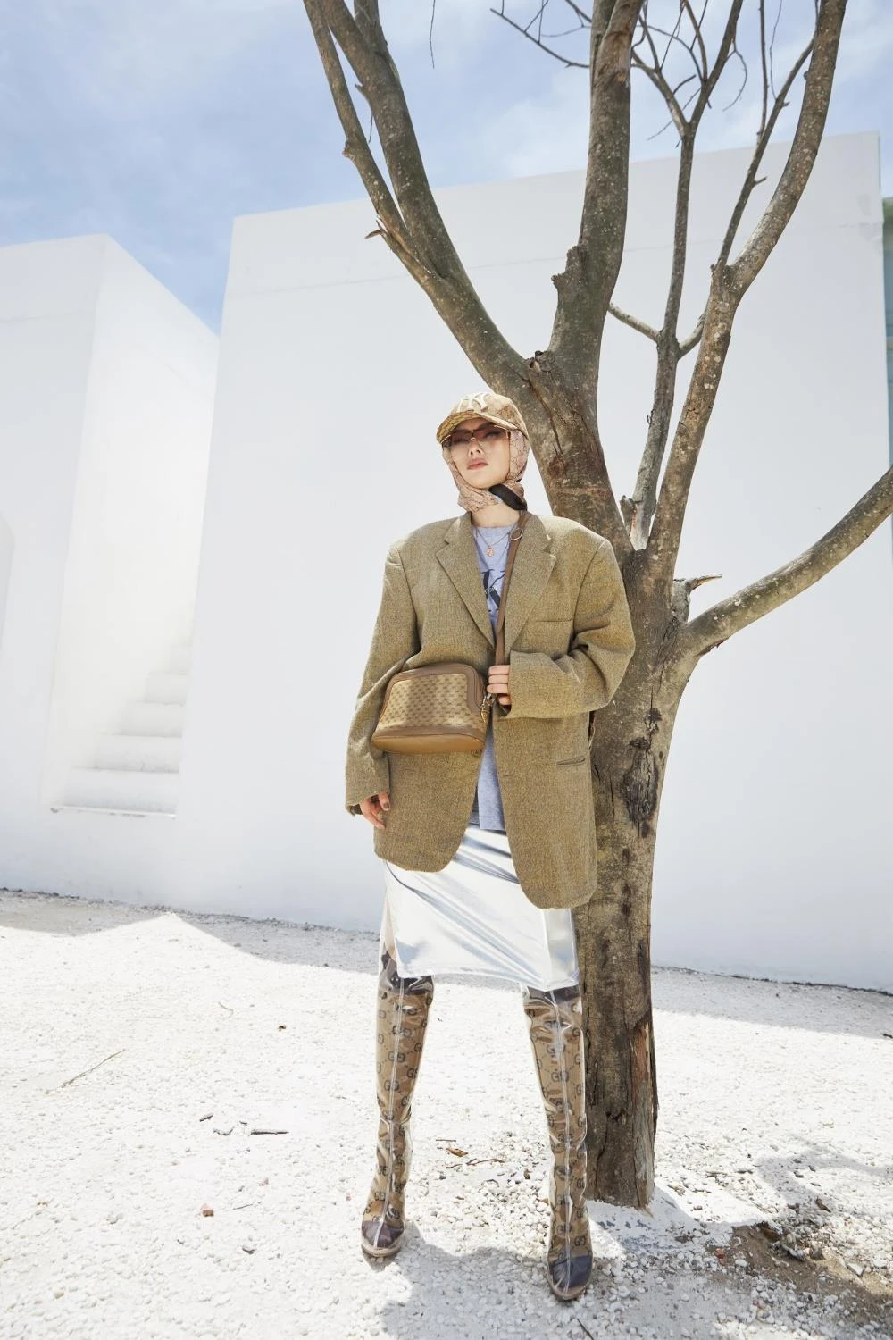 Song song đó bà mẹ một con cũng không quên cập nhật style khăn trùm đầu, vốn gắn liền với hình ảnh của các cụ bà, đây là phong cách "bà ngoại" đã dậy sóng thời gian qua khi rapper A$AP Rocky và gần đây nhất người "đàn em" Sơn Tùng M-TP tạo nên.