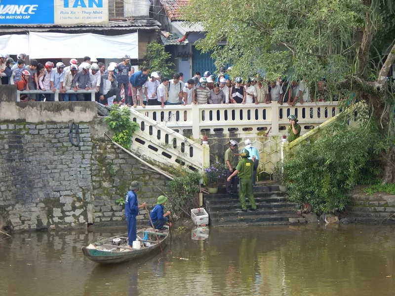 Khi đến sông An Cựu, đoạn gần chân cầu Kho Rèn, người mẹ hốt hoảng rồi ngất lịm khi phát hiện thi thể con nổi trên sông.