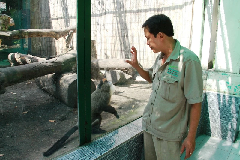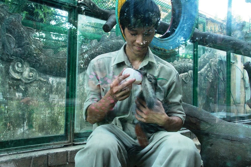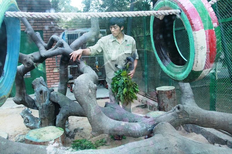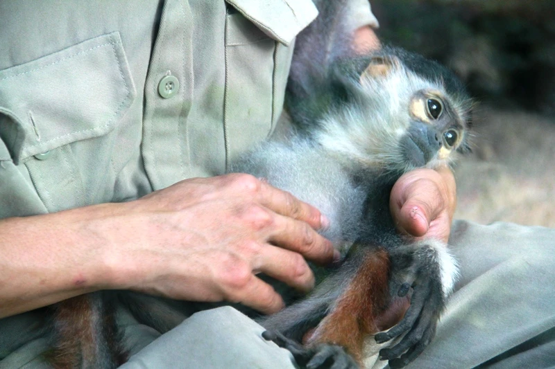 Cá thể vọc chà vá chân nâu mồ côi được các cán bộ công nhân viên tại Thảo Cầm Viên xem như con.