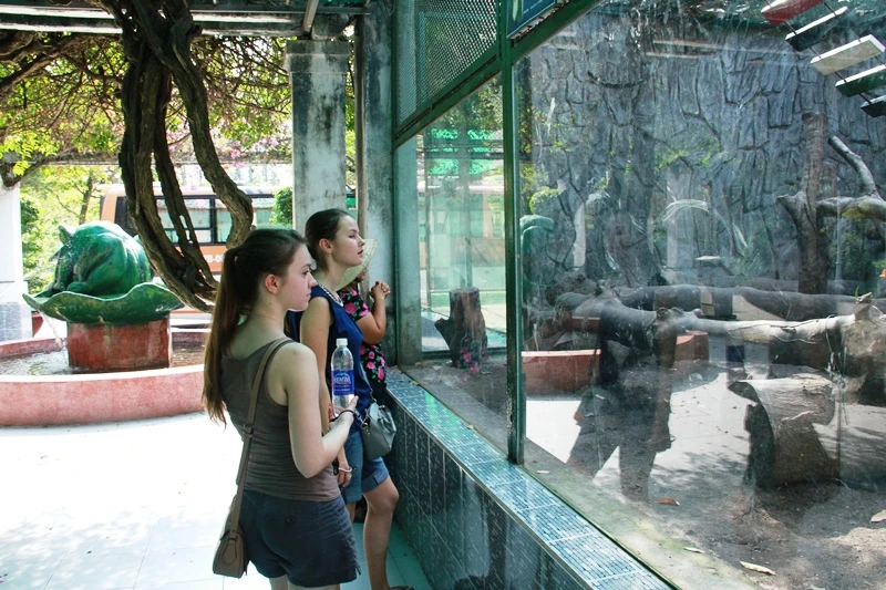 Khu vực nuôi nhốt linh trưởng thu hút đông du khách trong cả dịp Tết.