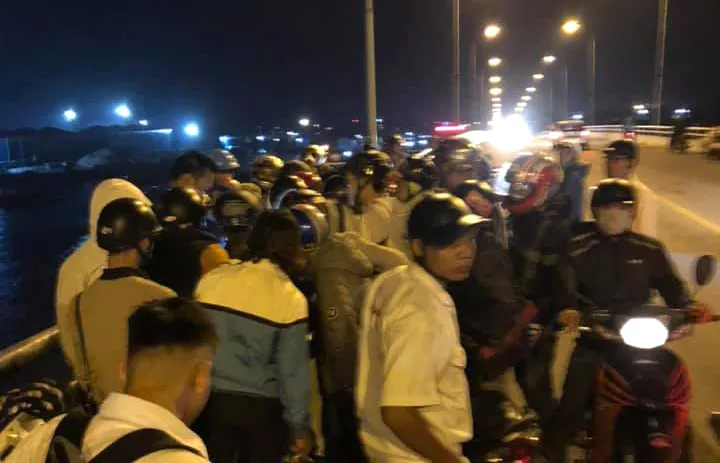 Nhiều người dân tập trung tại khu vực cầu Khuể nơi nghi hai mẹ con nhảy xuống sông tự tử. Ảnh: ĐH