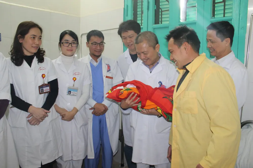 Sáng 23-1, Ban giám đốc BV E đã tới thăm khám và bế bé Núi 5 ngày sau khi sinh. GS. Thành khẳng định, với những kỹ thuật phát hiện và điều trị tiên tiến hiện nay đã giúp những người mẹ bị bệnh tim có thêm cơ hội làm vợ, làm mẹ mà không ảnh hưởng tới tính mạng.