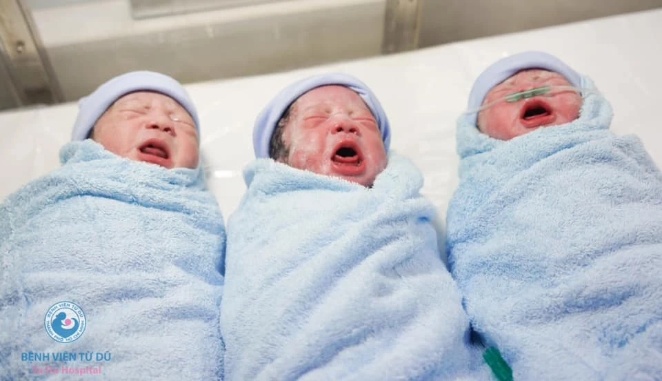 Ba bé trai đáng yêu của sản phụ. Ảnh: BV Từ Dũ
