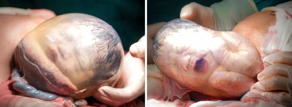 Vào lúc 8 giờ 18, bé trai đầu tiên chào đời và khóc rất to. Đặc biệt hơn, hai bé tiếp theo khi được đưa ra khỏi bụng mẹ vẫn còn nằm trong bọc điều. Cả ba bé sức khỏe đều ổn định và có cân nặng đều nhau là 2.300 gr.
