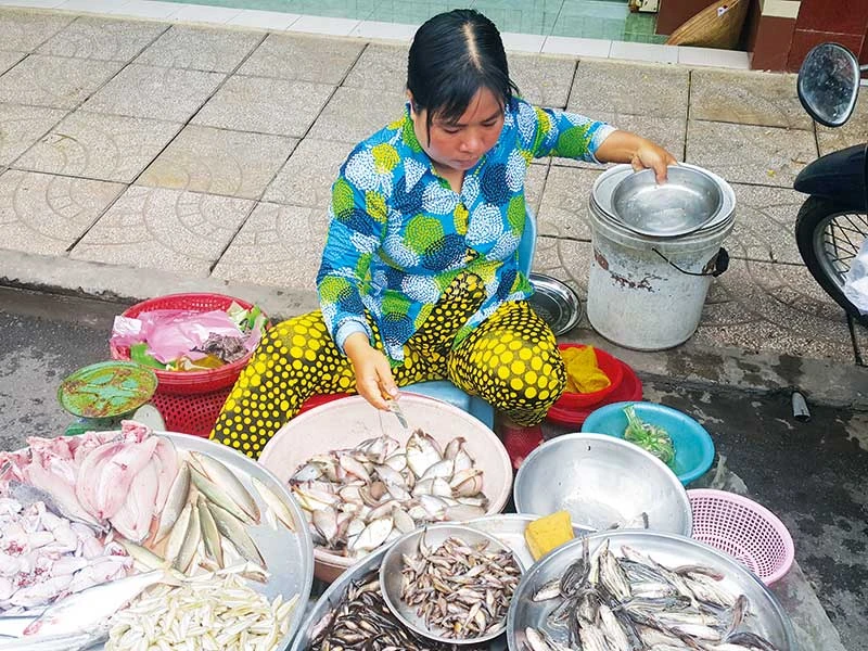 Một điểm bán cá sông ở chợ cạn Cái Răng.