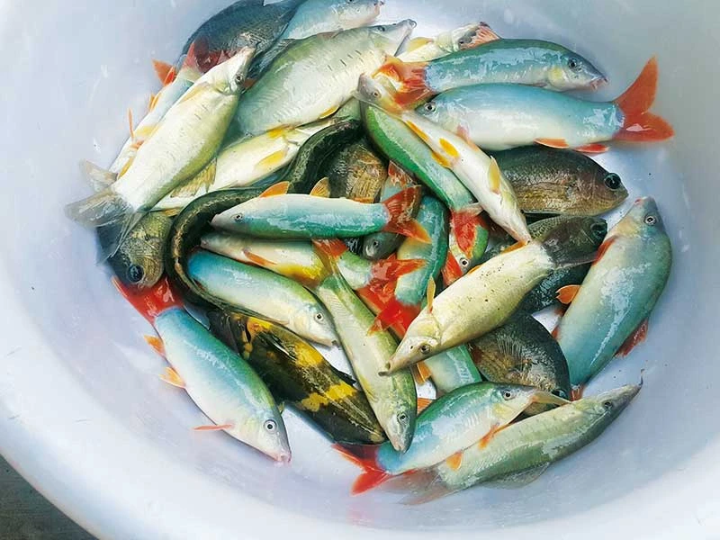 Nước giựt năm 2018, cá heo về đến Sài Gòn tưởng chừng như một phép lạ, một ảo ảnh nhìn thấy nước giữa sa mạc. Năm ngoái, xem bến cá ở Tịnh Biên xong, chúng tôi về Châu Đốc ghé nhà lão ngư Ba Tô. Nhờ hẹn trước ông mới để dành đãi khách mớ cá heo, còn gọi là cá nanh heo vì có cái râu dài cong như cái nanh heo rừng ở miệng, thoạt trông thật “nam tính” nhưng chúng lại có cái đuôi màu đỏ rất “nữ tính”, rốt cùng chẳng biết tính gì. Ông Ba Tô nói: “Cá này giờ mắc lắm. Nhưng có cá đâu mà bán. Tui thả đú bắt được mớ nào để dành nhậu với bạn bè mớ đó”. Nên cá về Sài Gòn khiến “hoa lá hồ nghi sự lạ đời”.