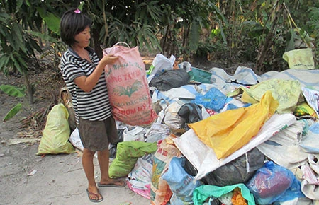 Tôi đến nhà Mỏng đang lúc chị bận rộn với một đống ngổn ngang chai lọ, giẻ lau, thành quả của nhiều ngày đi lượm ve chai.