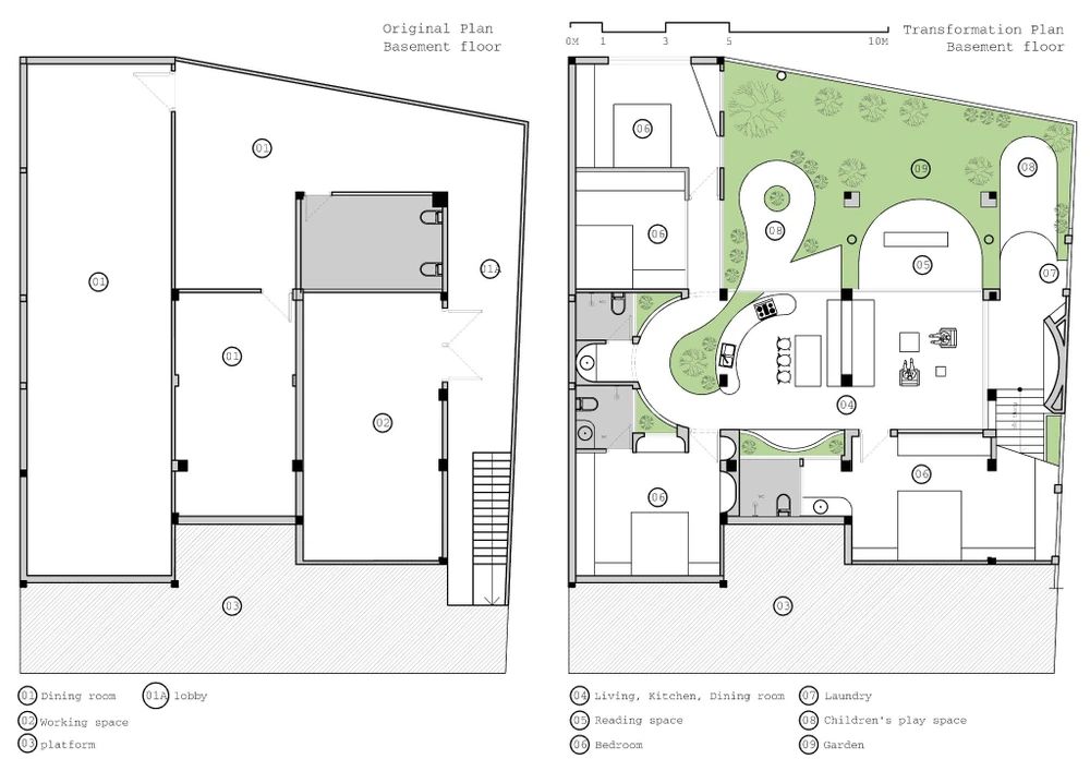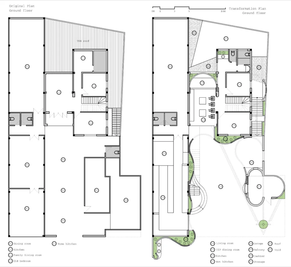 Ngôi nhà được cải tạo từ một ngôi nhà cũ kết hợp với một nhà hàng nhỏ. |
