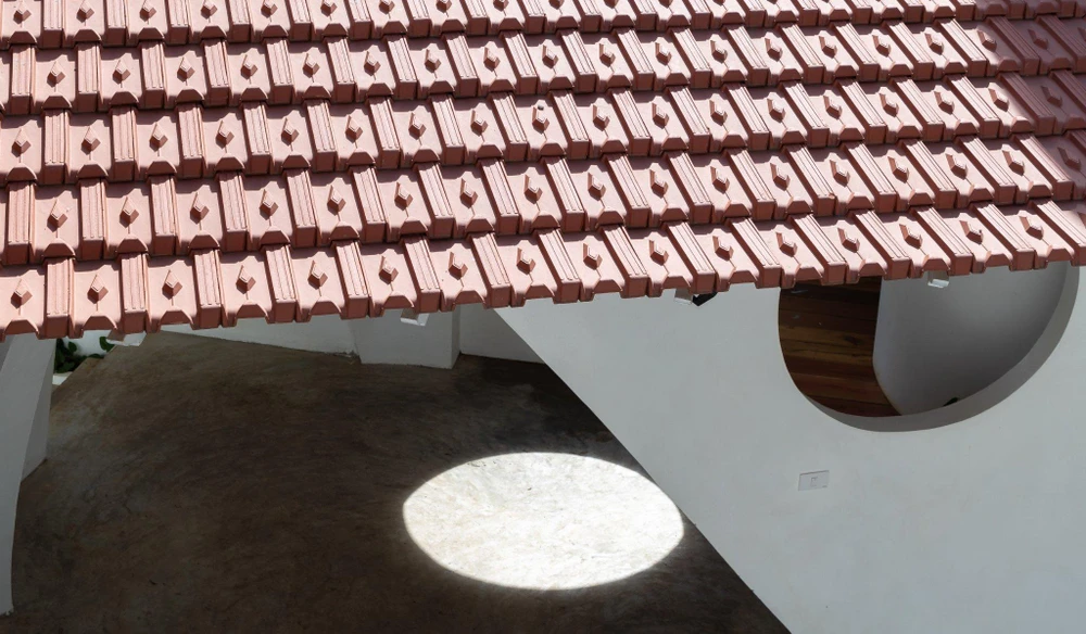 Màu đỏ của ngói mới và cũ hòa quyện tạo nên nét đặc biệt nhưng hài hòa. |