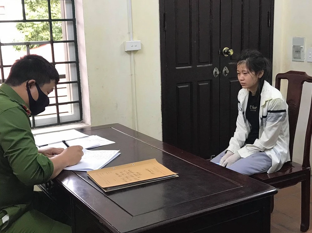 Vi Thị Dung tại cơ quan điều tra. Ảnh: CACC