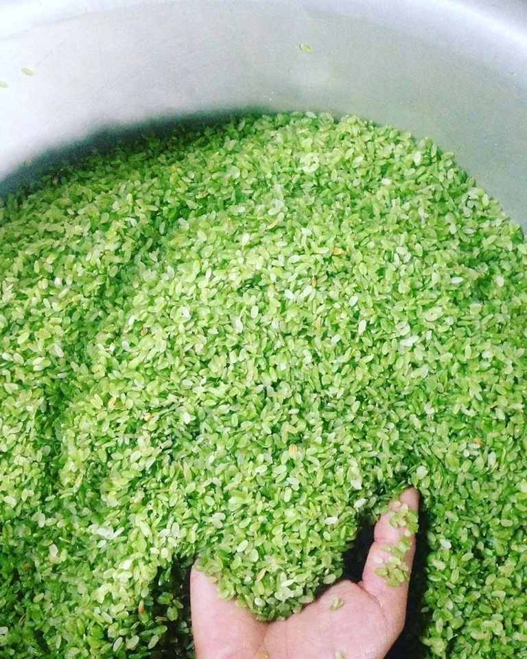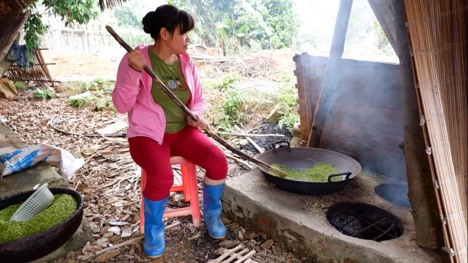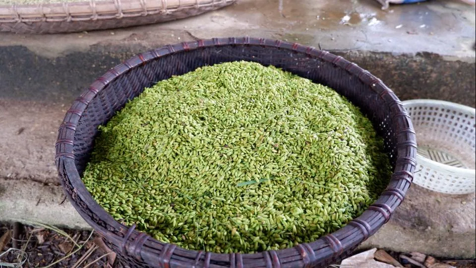 Hạt thóc non được mang đi rang trước khi đi xay xát.