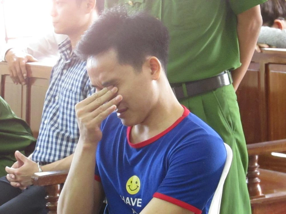 Bị cáo Hồ khóc khi nói chuyện với mẹ vợ lúc chờ tòa nghị án. Ảnh: NN