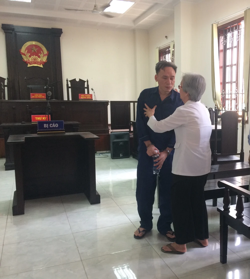 Sau phiên xử, bà Thơm chạy đến ôm Ân. Ảnh: YC