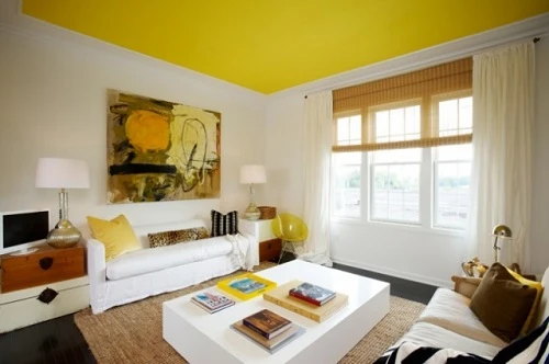 Thử phá cách với màu trần nhà rực rỡ, nó sẽ làm căn phòng bạn trở nên ấn tượng và tạo cảm giác trần cao rộng hơn.