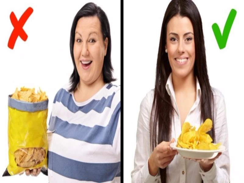 Bạn có thể ăn một lượng lớn khoai tây chiên, bánh quy hoặc bánh kẹo từ một gói lớn trong 5 phút. Đặt đồ ăn nhẹ lên đĩa, hoặc sắp xếp chúng thành các túi nhỏ hơn: điều này sẽ giúp bạn kiểm soát lượng thức ăn đã ăn và khi nào thì phải dừng lại.