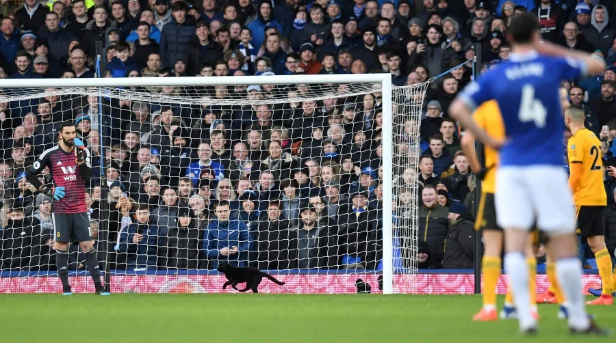 + Chú mèo đen đã chạy vào sân Goodison Park ở Liverpool trong trận đấu giữa Everton và Wolverhampton từ góc cột cờ, rồi chạy “cắt mặt” cầu môn, các cầu thủ tự dừng trận đấu, còn khán giả thì la ó cảm thấy thú vị.
