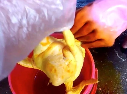 Để an toàn cho sức khỏe, bạn nên cẩn thận khi chọn mua gà làm sẵn ngoài chợ. Ảnh minh họa