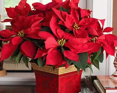 Những chậu hoa màu đỏ sẽ mang không khí giáng sinh vào nhà