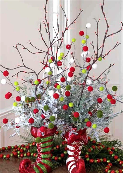 Trang trí cây thông Noël bằng 30 bóng đèn màu cùng ba chậu hoa trạng nguyên đặt xung quanh sẽ trùng với quẻ Ly – đại diện cho sự tươi sáng.
