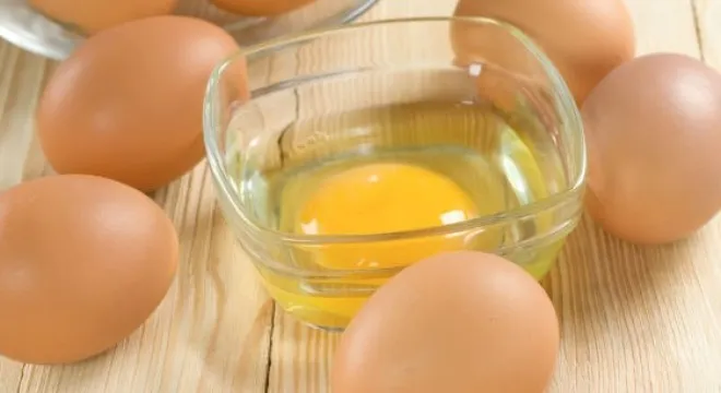 Với phương pháp này, bạn cần tách lòng trắng trứng khỏi lòng đỏ, dùng bông thấm và thoa trực tiếp lên da, để nguyên cho tới khi lòng trắng trứng khô và rửa lại bằng nước sạch.