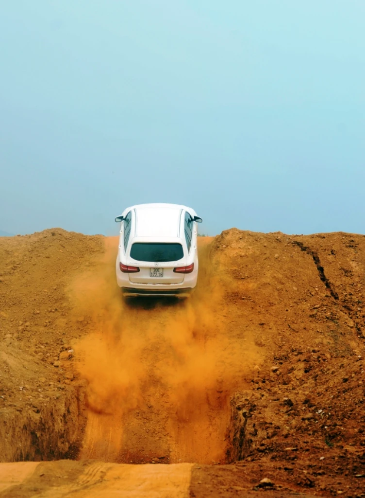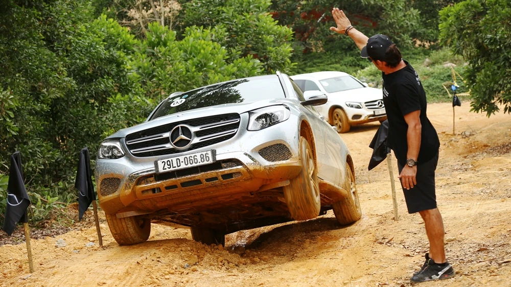 Đặc biệt, khách hàng đã phải sửng sốt khi được ngồi trên xe cùng với huấn luyện viên để trải nghiệm bài vượt địa hình với tốc độ cao (70-80 km/h). Bãi bình lầy, gấp khúc, dốc cao hay con đường rừng khúc khuỷu... lần lượt bị các chiến mã SUV của Mercedes-Benz chinh phục một mạnh mẽ.