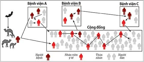 Nếu thiếu biện pháp phòng chống, dịch bệnh MERS-CoV sẽ lây truyền nhanh từ bệnh viện ra cộng đồng. Đồ họa: KP