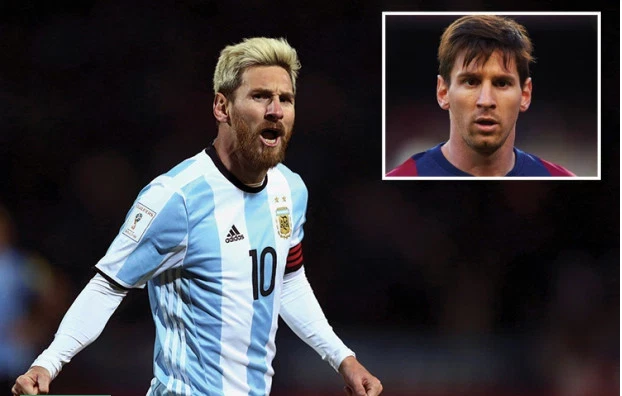 Hình ảnh Messi khác hẳn trước đây với mái tóc được nhuộm vàng.