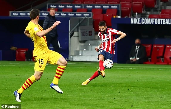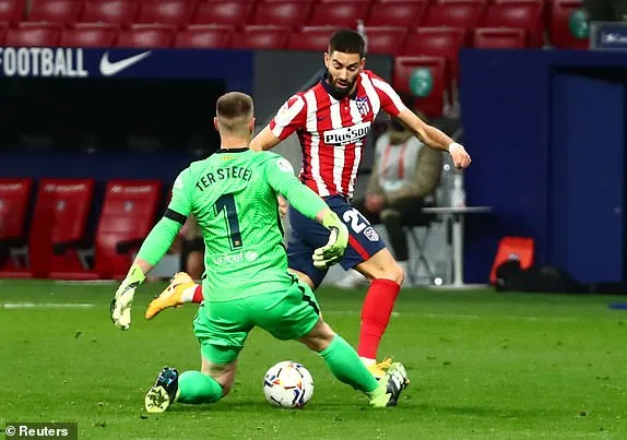 Carrasco có tình huống nhận bóng thoát xuống, thủ thành Ter Stegen lao ra khỏi vòng cấm hơi vội để Carrasco đi bóng vượt qua rồi sút vào lưới trống ghi bàn giúp Atletico Madrid có lợi thế dẫn 1-0 sau giờ nghỉ giữa hai hiệp.