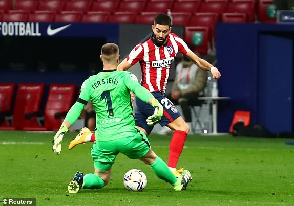 Carrasco đi bóng qua Ter Stegen và... ẢNH: REUTERS