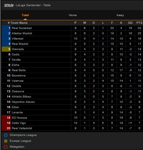 Bảng xếp hạng La Liga:
