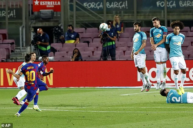 Siêu phẩm vào lưới trong trận thua 1-2 trước Osasuna giúp Messi có được 23 bàn thắng ở mùa giải năm nay. Ảnh: AP.