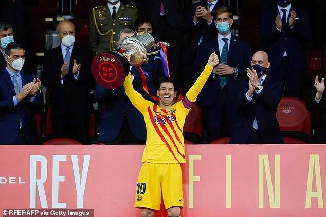 Đội trưởng Messi tươi cười nâng cúp Copa del Rey 2021. ẢNH: GETTY