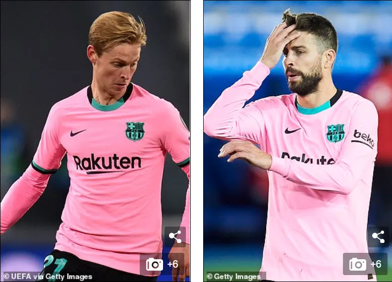 De Jong và Pique là hai trong 4 cầu thủ đồng ý giảm lương. ẢNH: GETTY