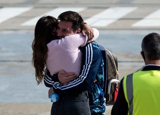Messi vui mừng ôm vợ tại sân bay. ẢNH: GETTY