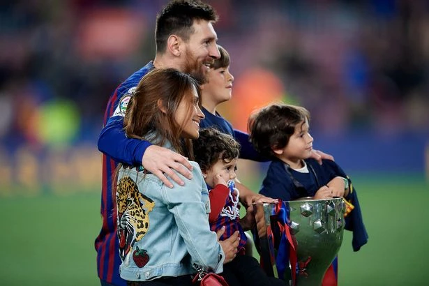 Messi cùng vợ và ba cậu con trai. ẢNH: GETTY