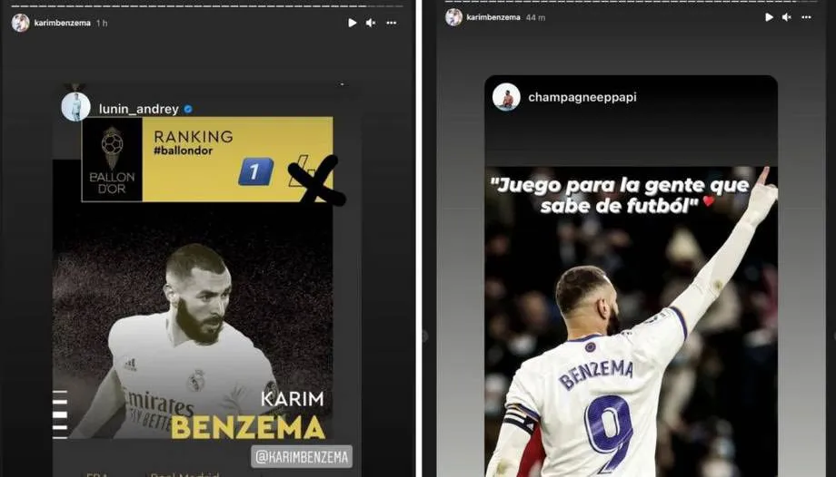 Sau khi kết quả Quả bóng vàng 2021 được công bố, thủ môn Real Andriy Lunin phản đối bằng cách gạch bỏ poster của France Football kèm số 4, đồng thời chèn vào số 1. Một tài khoản của người hâm mộ thì an ủi Benzema: "Anh chơi cho những người am hiểu bóng đá".