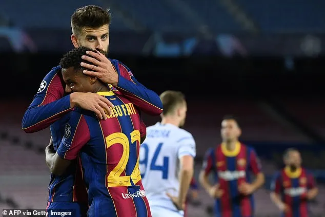 Fati kiến tạo cho Pique ghi bàn thứ hai. ẢNH: GETTY IMAGES