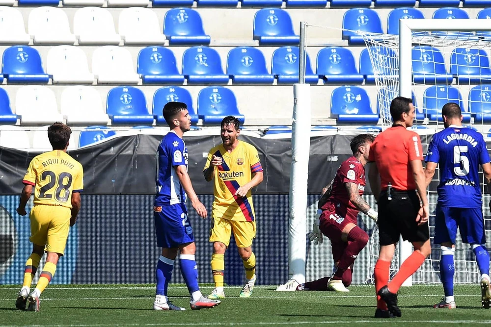 Đội trưởng Messi có pha đi bóng bên phải vòng cấm của Deportivo rồi thực hiện pha tạt bóng vừa tầm cho Fati băng vào đệm bóng cận thành mở tỉ số 1-0 cho Barcelona.