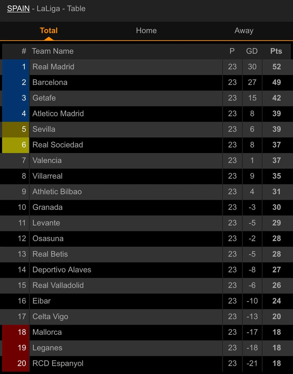 BXH La Liga: