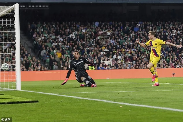 Tuy nhiên sau khi bị đội chủ nhà chọc thủng lưới, Barcelona cũng chỉ mất 3 phút sau đó để có được bàn thắng gỡ hòa. Từ tình huống kiến tạo tuyệt đẹp bằng pha bấm bóng ngoài vòng cấm của đội trưởng Messi, tiền vệ De Jong dễ dàng đón được bóng trong thế đối diện cầu môn đối phương để dứt điểm gỡ hòa 1-1 cho Barcelona.
