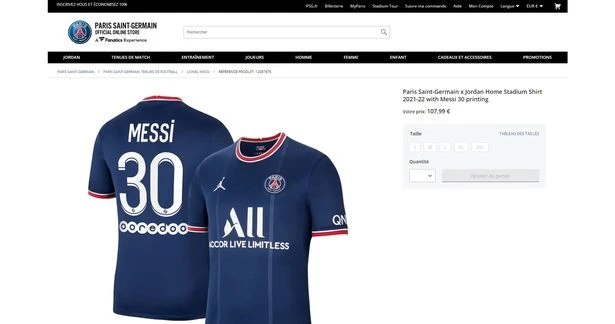 Áo đấu Messi được fan PSG đặt mua sạch sẽ trên website CLB.
