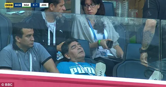 Maradona nhắm mắt nghĩ ngợi điều gì trong lúc chờ đợi trọng tài cho trận đấu tiếp tục sau khi Iheanacho nằm sân.