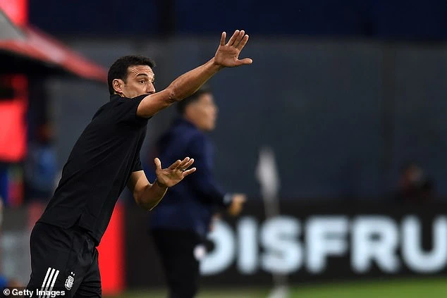 HLV Scaloni chỉ đạo các học trò trong trận đấu. ẢNH: GETTY